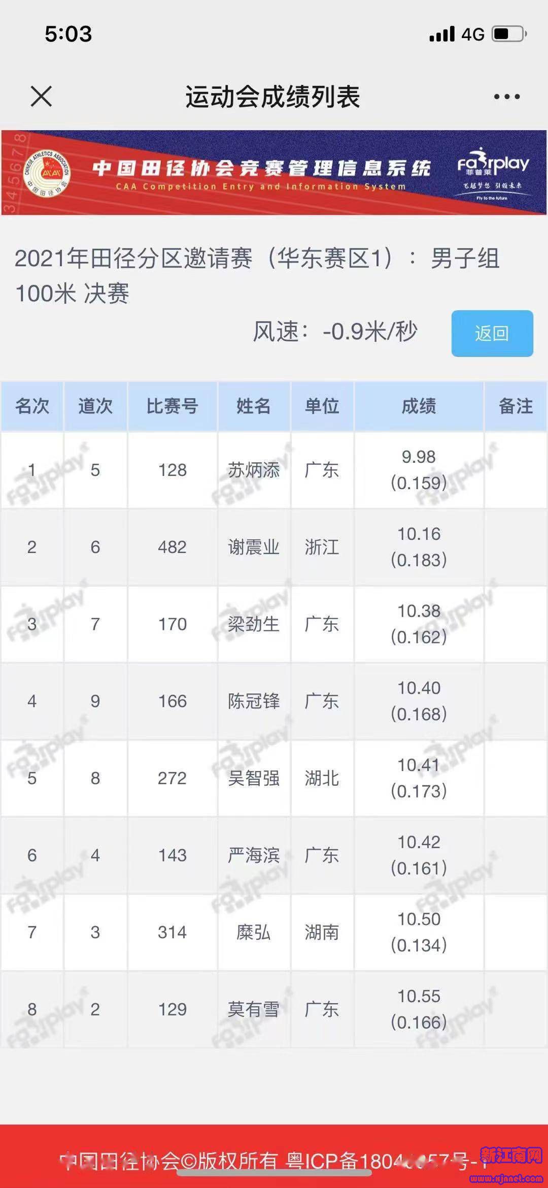 9秒98!蘇炳添?yè)魯≈x震業(yè)奪冠,刷新個(gè)人賽季最佳成績(jī)