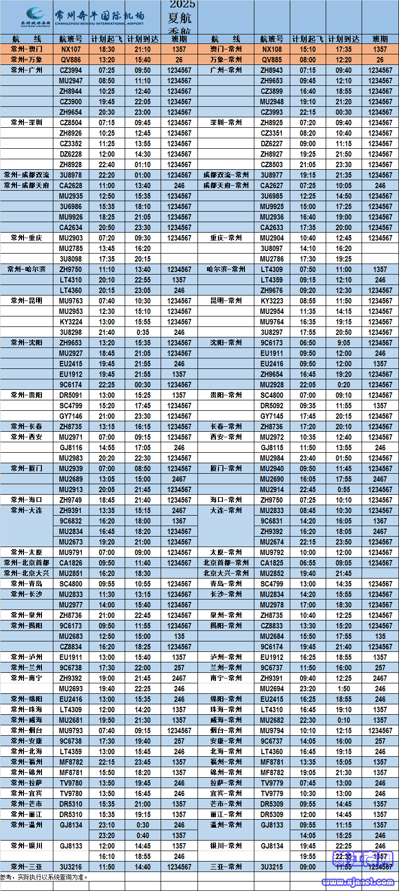 執(zhí)行夏航季航班計劃