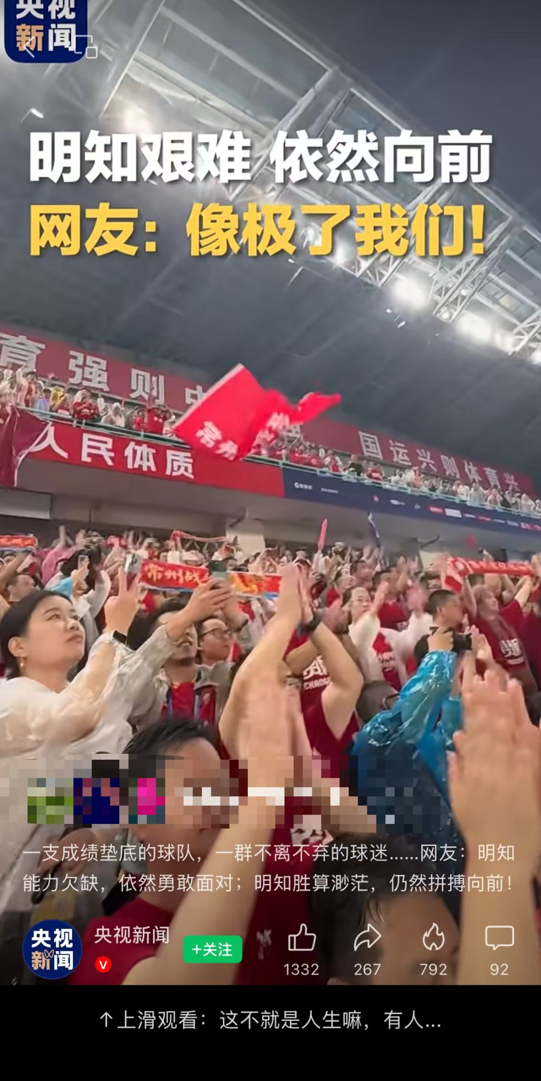 正如評論區(qū)一條高贊留言所言:“梗是梗,根是根”。常州的“根”是什么?是明知道贏不了,也絕不敷衍塞責(zé),以“參與一下”自我安慰。是用職業(yè)隊(duì)的標(biāo)準(zhǔn)要求自己。是輸了比賽,不丟骨氣。這份“根”,正是支撐其鐵骨錚錚的精神脊梁,是“硬骨頭”精神在“蘇超”賽場的集中體現(xiàn)。