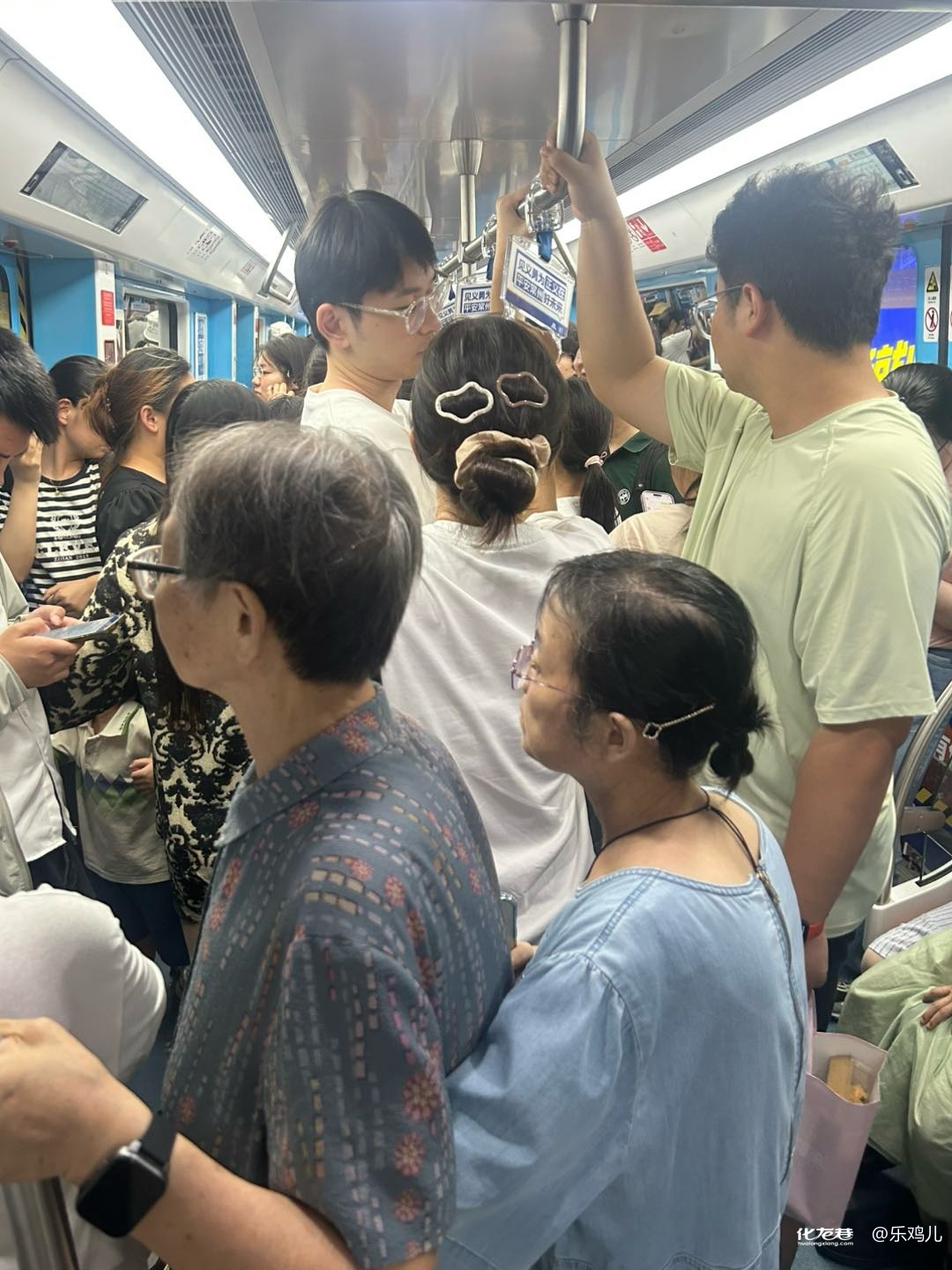 地鐵里別說座位了,連站的地方都快沒了: