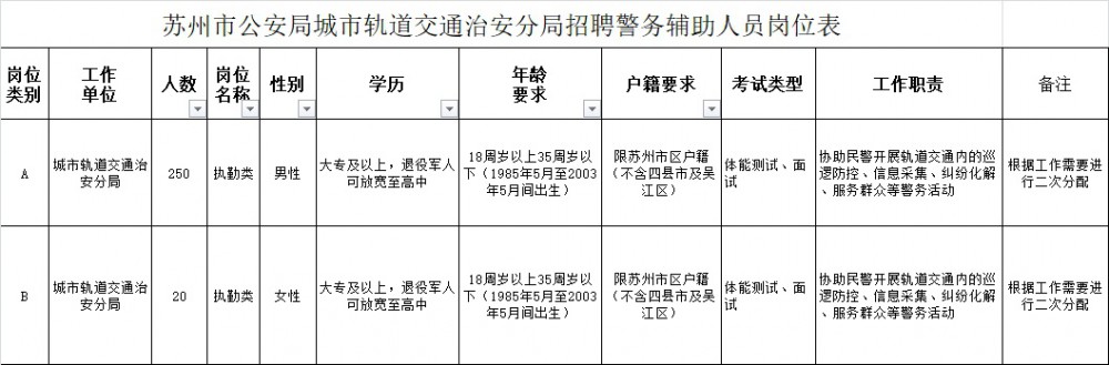 蘇州市公安局城市軌道交通治安分局現(xiàn)面向社會(huì)公開招聘執(zhí)勤類警務(wù)輔助人員270名。fVD新江南網(wǎng)|江南區(qū)域知名綜合門戶網(wǎng)