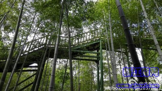 一座美麗的竹尖長(zhǎng)廊,貫穿于郁郁蔥蔥的竹林間。前半段都是用竹子搭建的空中長(zhǎng)廊,百回千轉(zhuǎn),如影隨風(fēng)。