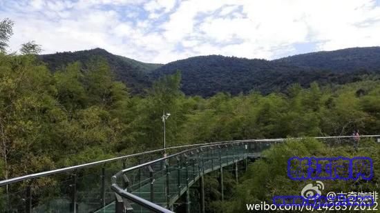 后半段是在一片竹林的開(kāi)闊處,一段鋼架托起的高空玻璃棧道,棧道全長(zhǎng)近百米,寬約兩米,人行其中,仿佛整片竹林都在腳下,可以好好體驗(yàn)一番“走在空中看竹,站在竹尖看海”的奇妙之感!