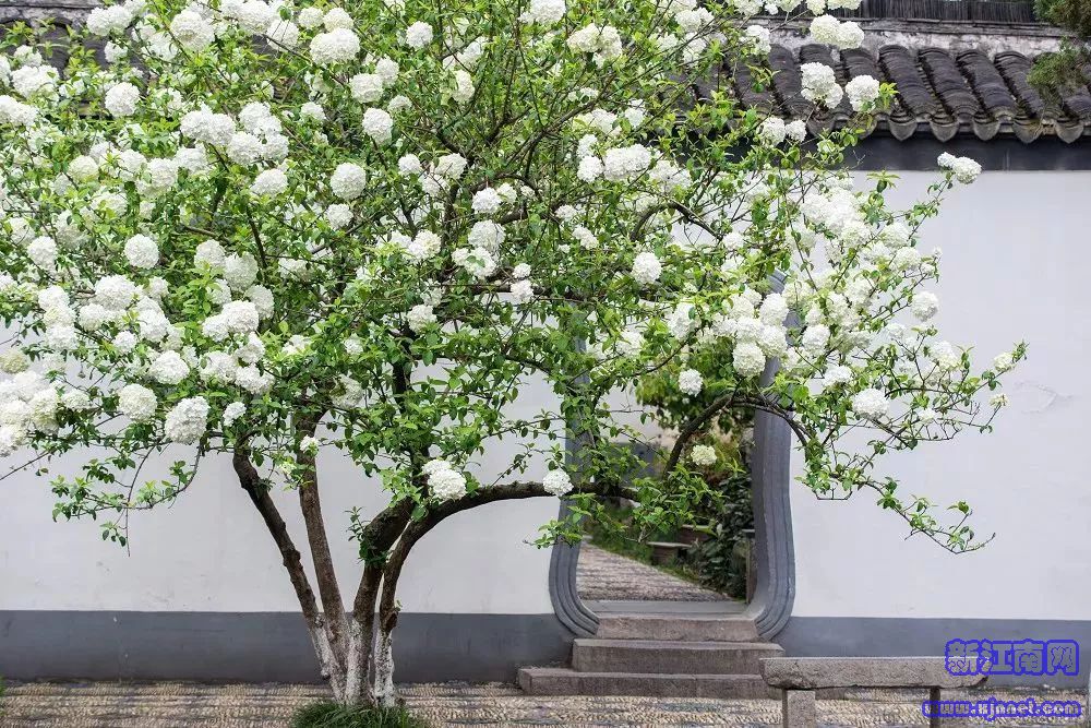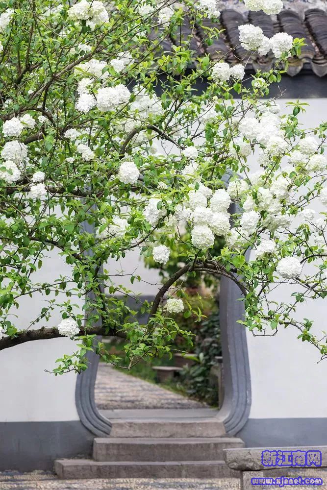 一樹白花和圍墻花窗相映,透著江南園林別樣的秀麗。煦園的木繡球是孤獨求敗,只一棵就足夠美。wiY新江南網(wǎng)|江南區(qū)域知名綜合門戶網(wǎng)