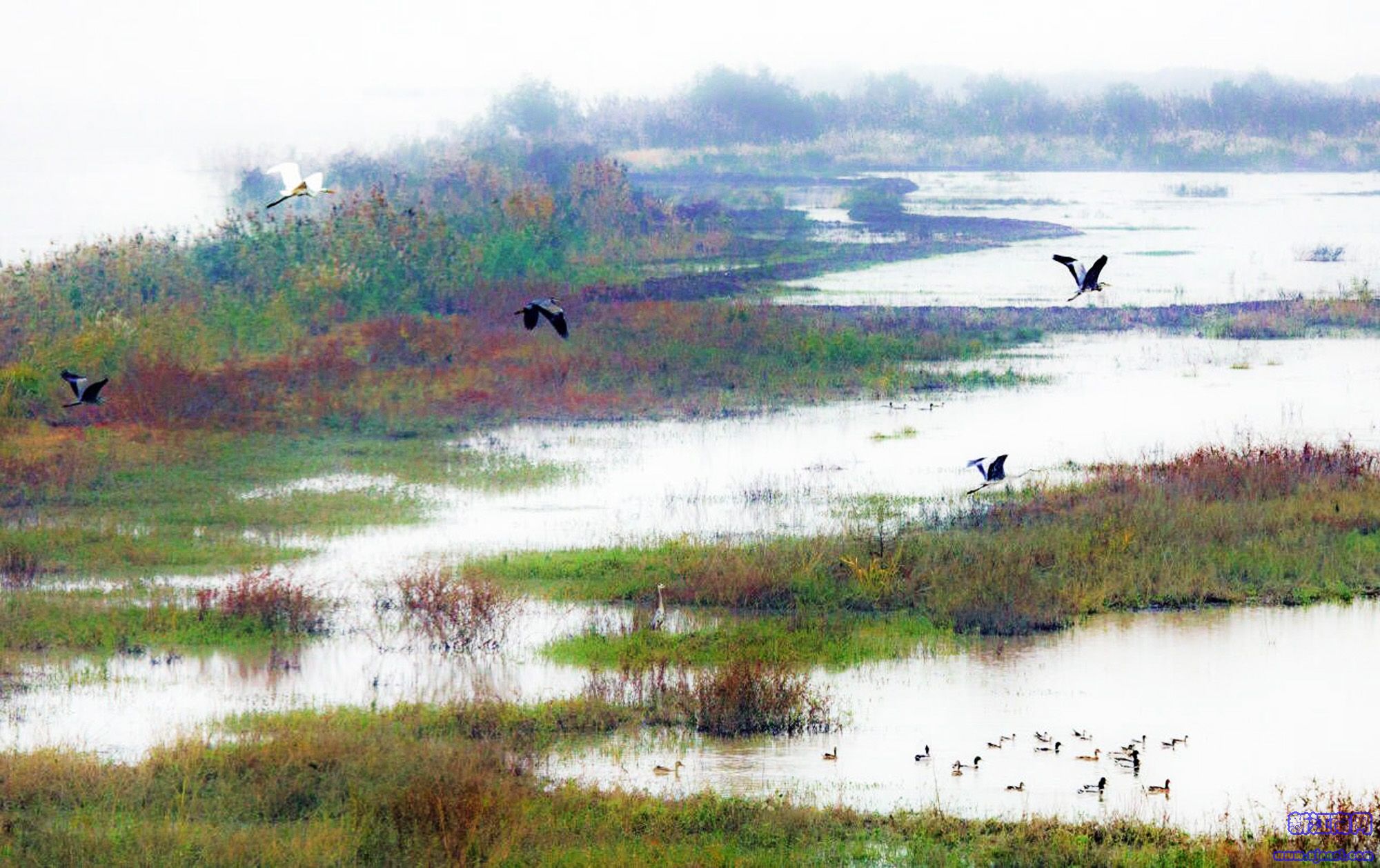 高郵湖濕地成為鳥類家園。春分前后,一群群候鳥歸來,在此覓食筑巢。程曦 王林山 攝