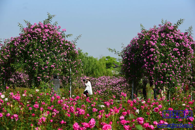 4月29日,市民在太湖新城的玫瑰園里觀賞美景。連日來,位于太湖新城尚賢河濕地玫瑰園內(nèi)的薔薇、玫瑰、月季競(jìng)相綻放,吸引不少市民到此賞花拍照。(還月亮 攝)