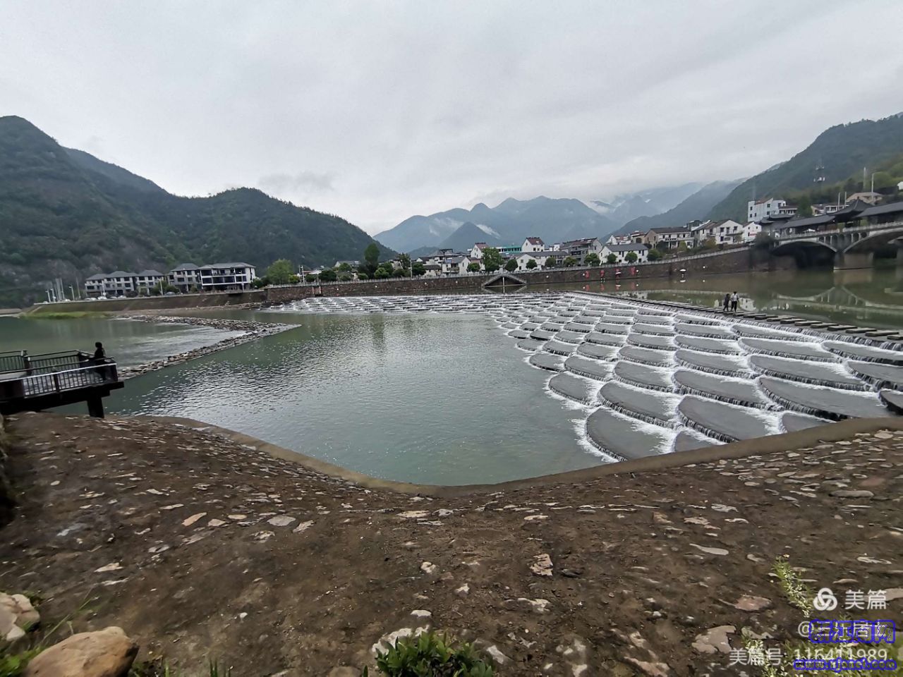 一座古色古香的廊橋連接了兩岸山青水秀的鄉(xiāng)村,龍鱗壩就座落在廊橋的下游的數(shù)百米處。大巴停在了廊橋的北側(cè)。我們下車后,從廊橋穿橋而過。到了南岸后,順著臺階拾級而下,再沿著汀步跨步向前。k2o新江南網(wǎng)|江南區(qū)域知名綜合門戶網(wǎng)