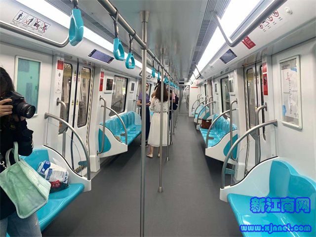14時(shí)32分,二號線車廂內(nèi)部終于揭開了神秘面紗,相對一號線來說,二號線客流量會比較大,因此二號線的座位特意做了一個(gè)分割。