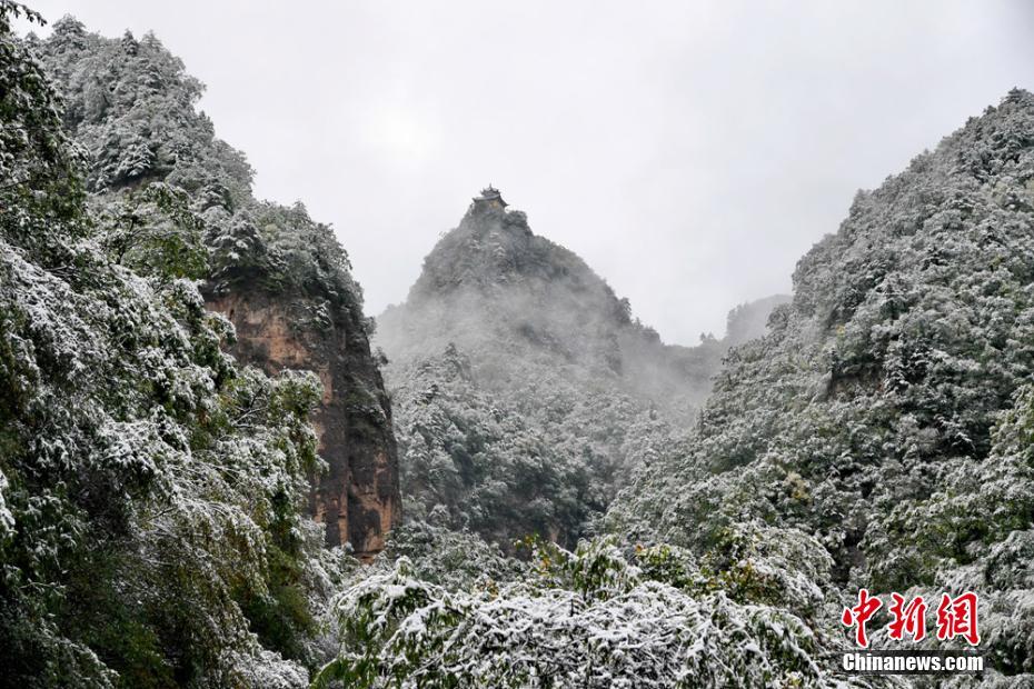 游人踏雪游崆峒 盡賞秋日冬景之美