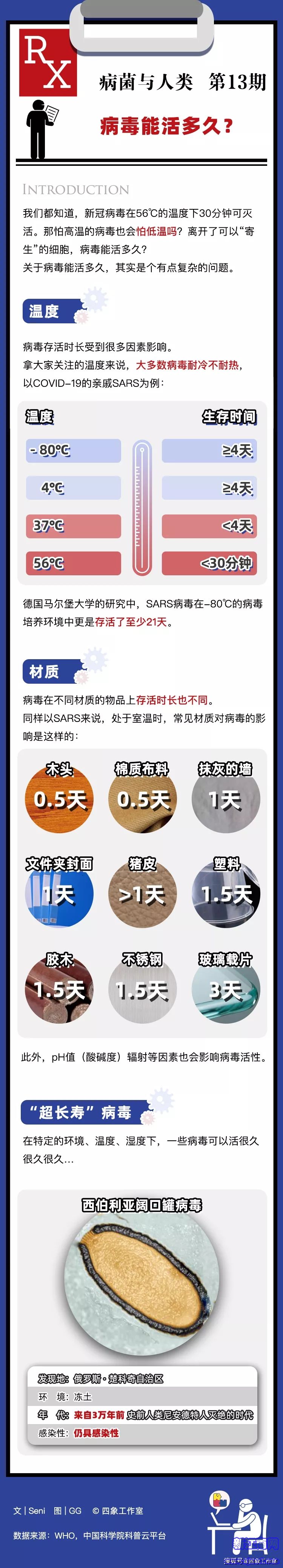不過不要忘了,病毒具有寄生性,必須在細(xì)胞中、而且必須是活細(xì)胞中才能增殖。離開細(xì)胞進(jìn)入普通環(huán)境后,無法獨(dú)立行走的病毒能存活多久就要看運(yùn)氣了,溫度、濕度、飄在空氣中還是落在鐵板上都會帶來不同的結(jié)果。