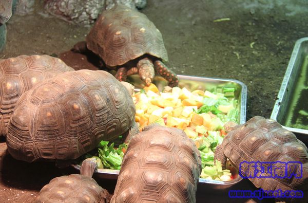 兩爬館內(nèi)三樓生活著數(shù)種珍稀陸龜,它們對(duì)于冬季的環(huán)境溫度要求較高,除了要有uv燈替代日光浴外,還需要注意照射時(shí)長(zhǎng)及安裝位置、距離,保證飼養(yǎng)環(huán)境的濕度等。對(duì)于溫度,白天控制在26—30℃,夜間控制在24—26℃。對(duì)于飲食,除了要提供清潔的飲水外,食物以龜糧為主,輔以新鮮蔬果及青草等。