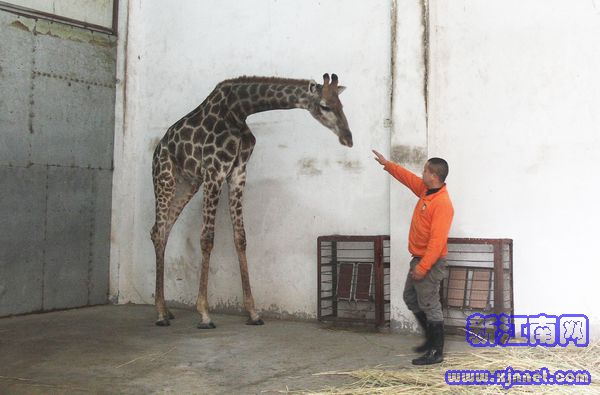 怕冷、喜靜的長(zhǎng)頸鹿,在氣溫低于10℃時(shí),就喜歡到室內(nèi)避寒了。飼養(yǎng)員季師傅為長(zhǎng)頸鹿“歡歡”在超大的室內(nèi)分設(shè)了“餐廳”和“臥室”。為了提高長(zhǎng)頸鹿冬天的食欲,飼養(yǎng)員喂食了營(yíng)養(yǎng)價(jià)值高的蘇丹草,除此之外還有干槐樹(shù)葉、鮮女貞葉、南瓜、蘋(píng)果、大蒜、胡蘿卜、草顆粒以及添加蛋白粉(安利)、鈣片、多維、鹽磚等。細(xì)心的飼養(yǎng)員季師傅為了改掉歡歡“挑嘴”的毛病,特地將食物切得差不多大小并且拌勻后投喂,將苜蓿草切碎后喂食則更易于消化。而在長(zhǎng)頸鹿“臥室”里不僅有地暖還鋪著厚厚的“稻草床”,飼養(yǎng)員每天會(huì)對(duì)稻草進(jìn)行翻曬。巨大的室內(nèi),墻上設(shè)有加熱板、地上有地暖,保證了夜間環(huán)境溫度在15℃左右,白天因?yàn)殚_(kāi)著門(mén),溫度應(yīng)維持在12℃左右。而超過(guò)10℃的大晴天,長(zhǎng)頸鹿更愿意到外場(chǎng)散步。