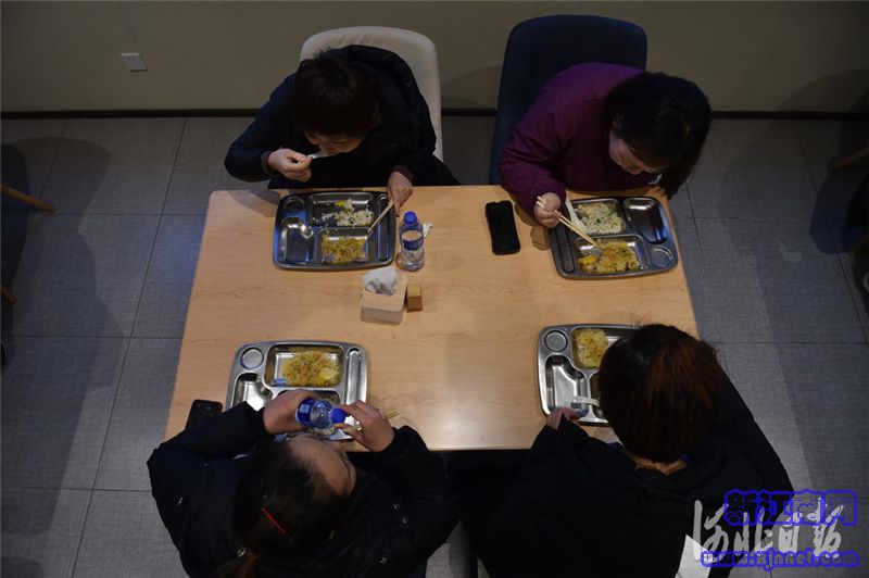 2021年1月7日下午,石家莊市裕華區(qū)槐底街道電力小區(qū),來自唐山市的醫(yī)護(hù)人員在入住的快捷酒店用簡餐,餐后他們就要前往小區(qū)替換正在工作的醫(yī)護(hù)人員,開展連夜檢測。當(dāng)日,來自唐山市的醫(yī)護(hù)人員抵達(dá)石家莊,支援全員核酸檢測。河北日報記者 趙海江攝影報道