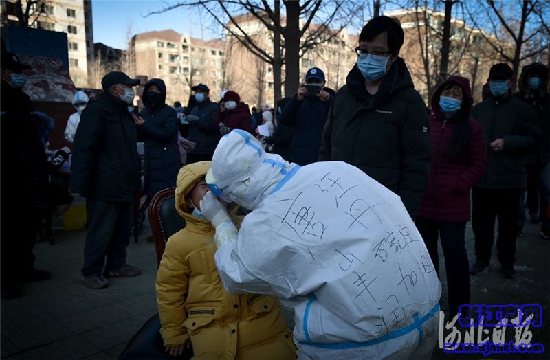 1月7日上午,在石家莊市書香花園小區(qū)地下車庫,來自滄州市的醫(yī)務(wù)人員正在緊張地為居民進(jìn)行核酸檢測采樣。他們的防護(hù)服上,“石家莊,加油”的字樣激勵著現(xiàn)場的居民們。任丘市中醫(yī)院護(hù)理部的王寧寧已經(jīng)在石家莊工作兩天了,從藁城區(qū)轉(zhuǎn)戰(zhàn)石家莊市區(qū),每天工作10多個小時,克服嚴(yán)寒和困難,奮戰(zhàn)疫情防控前線。