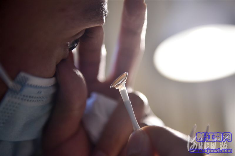 2021年1月7日,來自唐山市的醫(yī)護(hù)人員抵達(dá)石家莊。在剛剛?cè)胱〉木频昀,劉鑫正在佩戴隱形眼鏡。他說,普通眼鏡起霧,帶隱形眼鏡可以更好地開展工作。河北日報記者 趙杰攝影報道