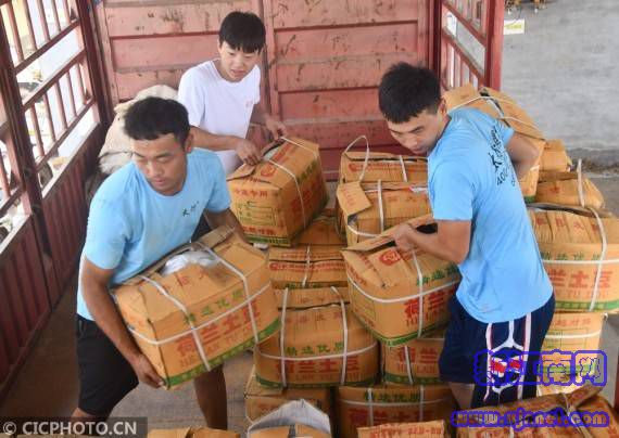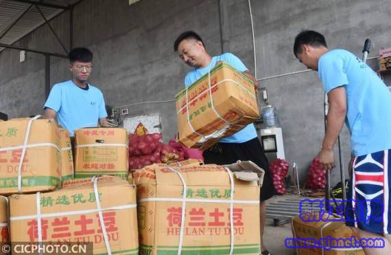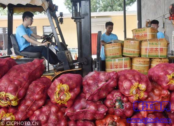 ↑在河北省邯鄲市永年區(qū),工作人員在搬運(yùn)蔬菜準(zhǔn)備發(fā)往河南省。CICPHOTO/胡高雷 攝