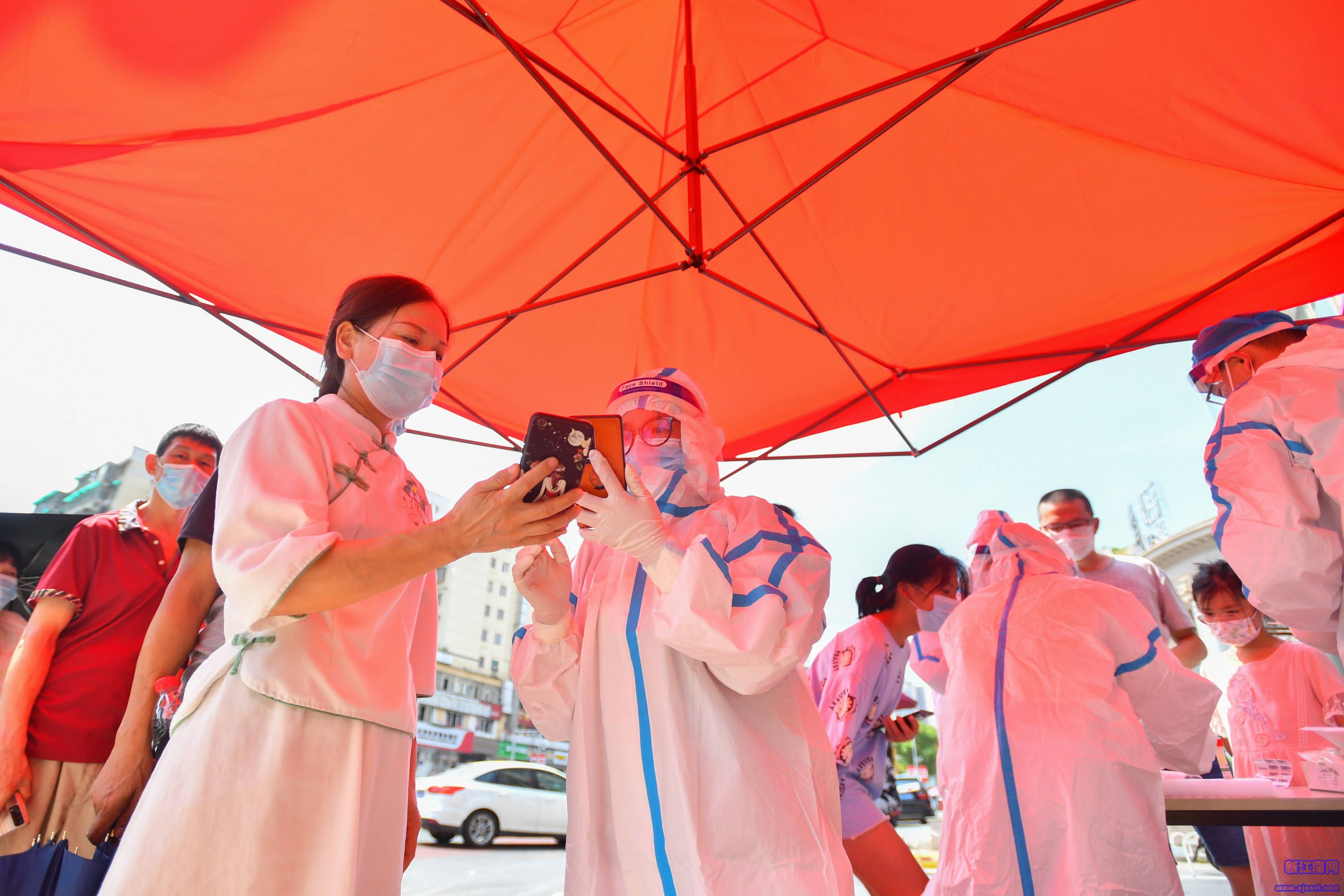 7月31日,長沙市天心區(qū)赤嶺路街道南大橋社區(qū)核酸檢測點(diǎn)現(xiàn)場。