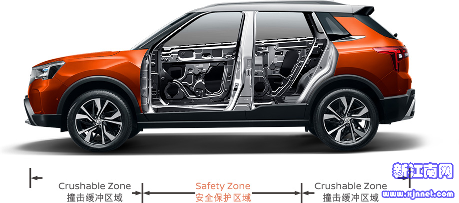 打鐵還需自身硬,啟辰旗下多款SUV車型都應(yīng)用了源自日產(chǎn)的被動(dòng)安全技術(shù)。其中,啟辰T60采用了以中高級(jí)車標(biāo)準(zhǔn)打造的Zone Body區(qū)域車身撞擊緩沖結(jié)構(gòu),在汽車發(fā)生碰撞時(shí),可以更高效地吸收沖撞力,從而保證駕乘人員的安全。另外,為了防止汽車在碰撞過程中產(chǎn)生過大形變,新車還采用了1200MPa高強(qiáng)鋼打造的UHSS高剛性車身來抵御沖擊。