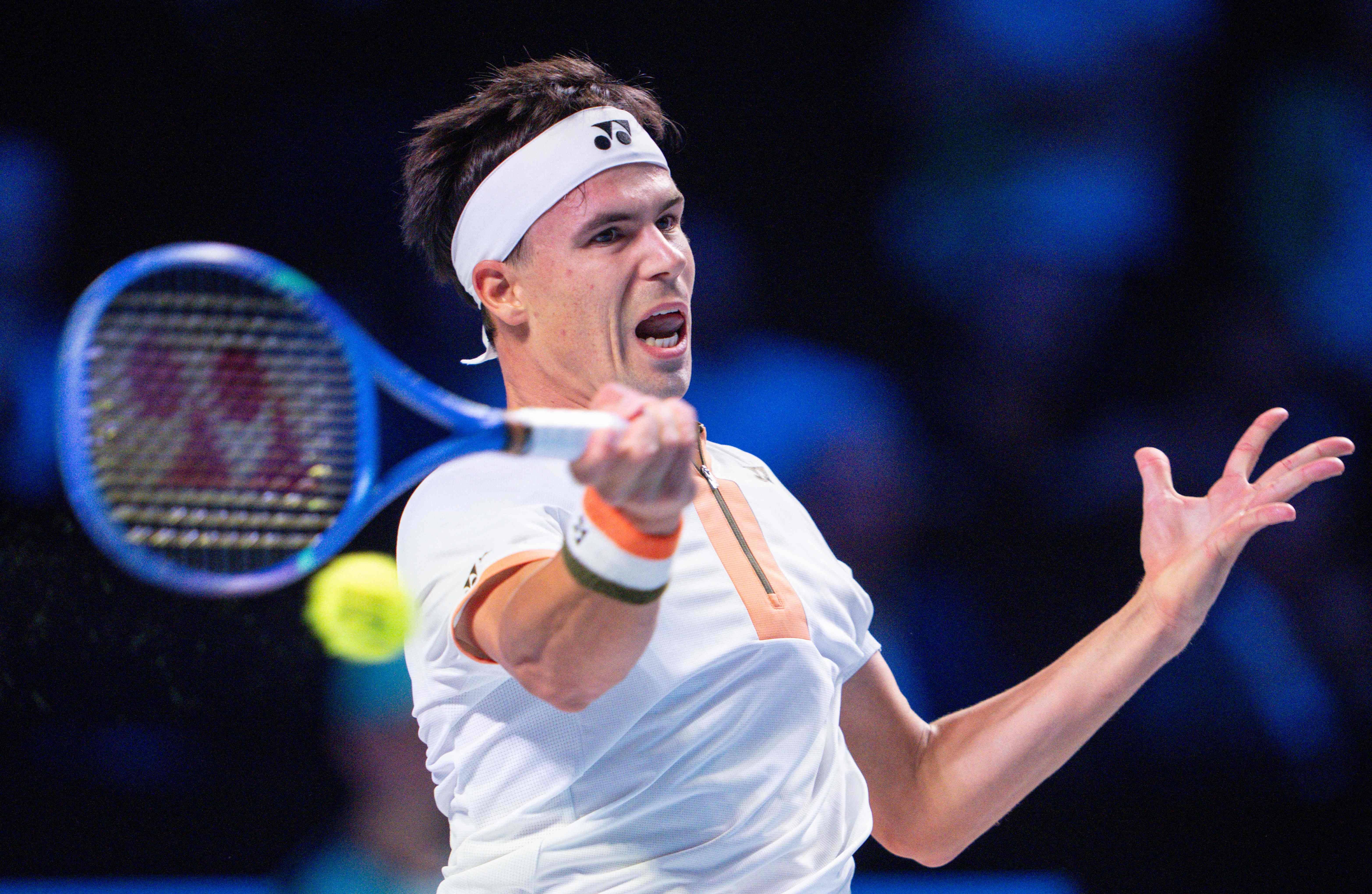 10月22日,辛納在比賽中回球。 新華社/法新0N6新江南網(wǎng)|江南區(qū)域知名綜合門戶網(wǎng)
