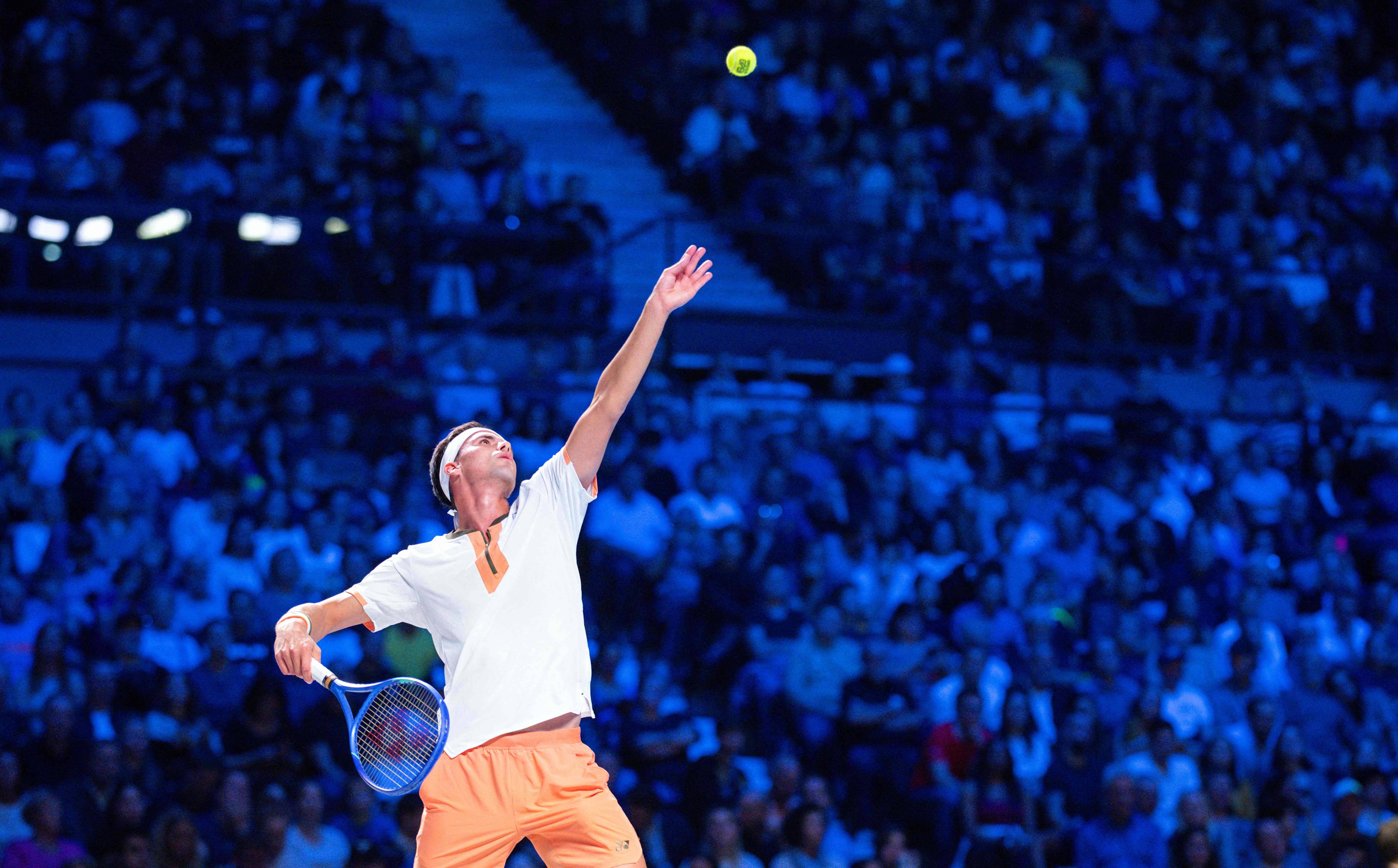 10月22日,辛納在比賽中發(fā)球。 新華社/法新0N6新江南網(wǎng)|江南區(qū)域知名綜合門戶網(wǎng)
