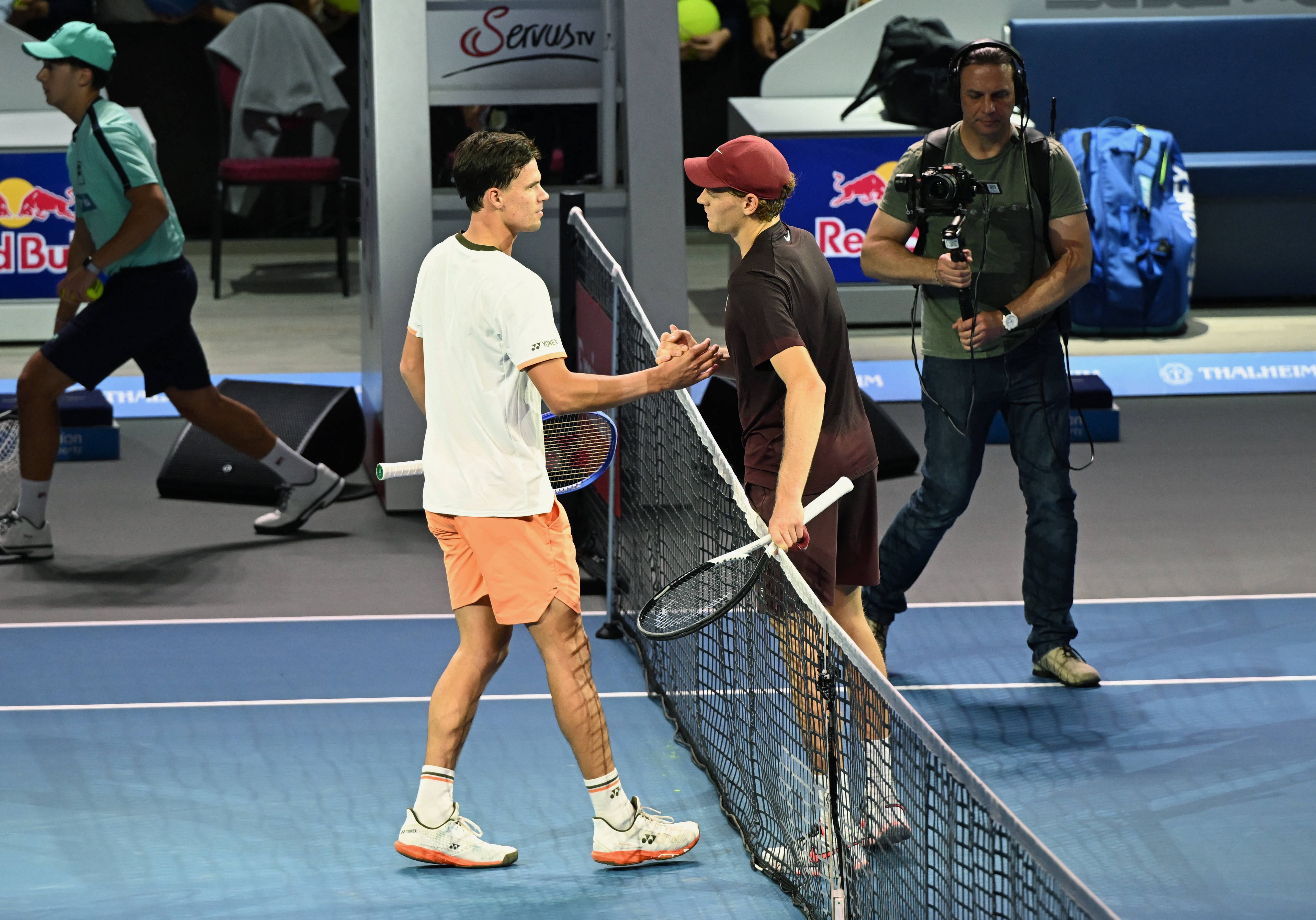 10月22日,辛納(右)和阿爾特邁爾在比賽后握手。 新華社/路透0N6新江南網(wǎng)|江南區(qū)域知名綜合門戶網(wǎng)