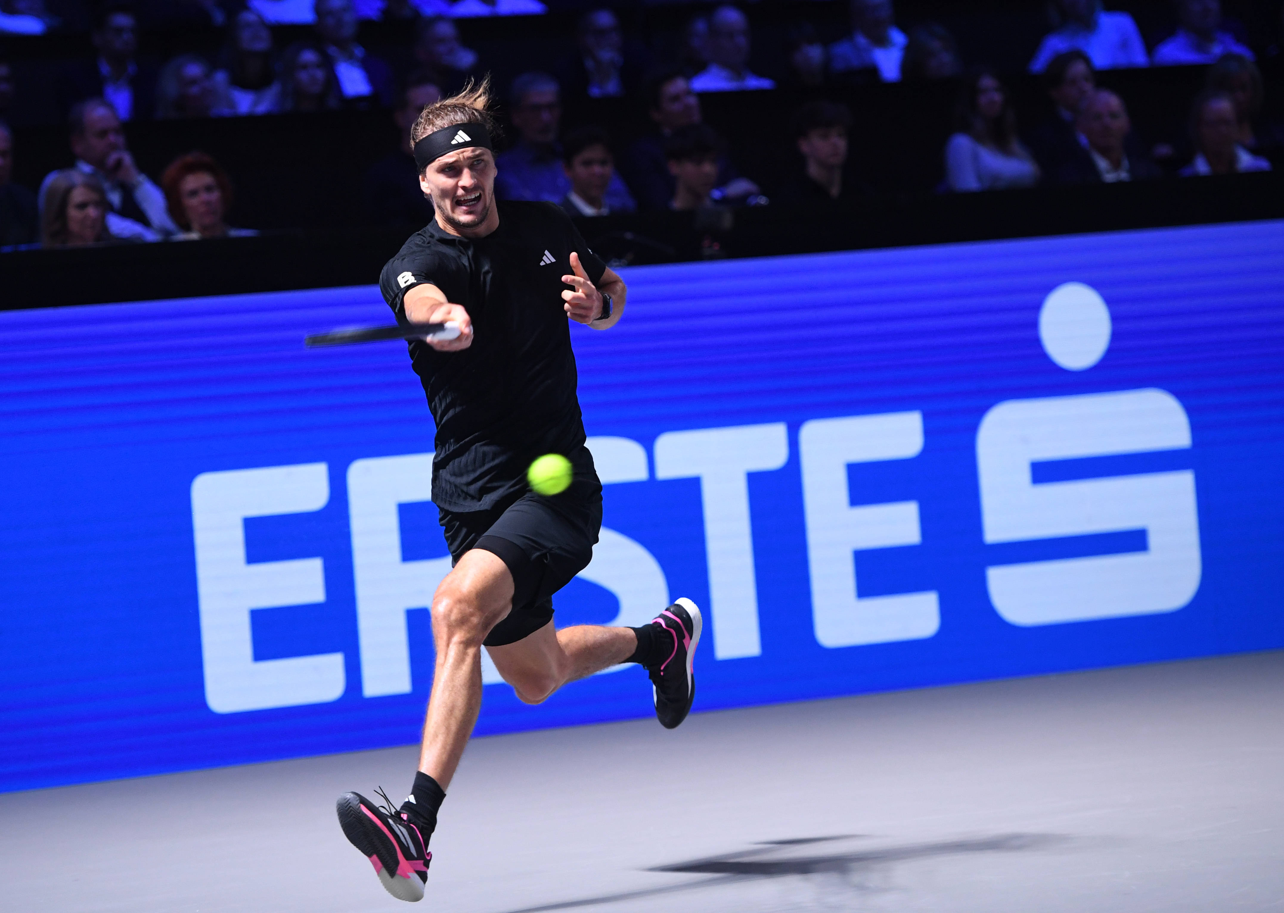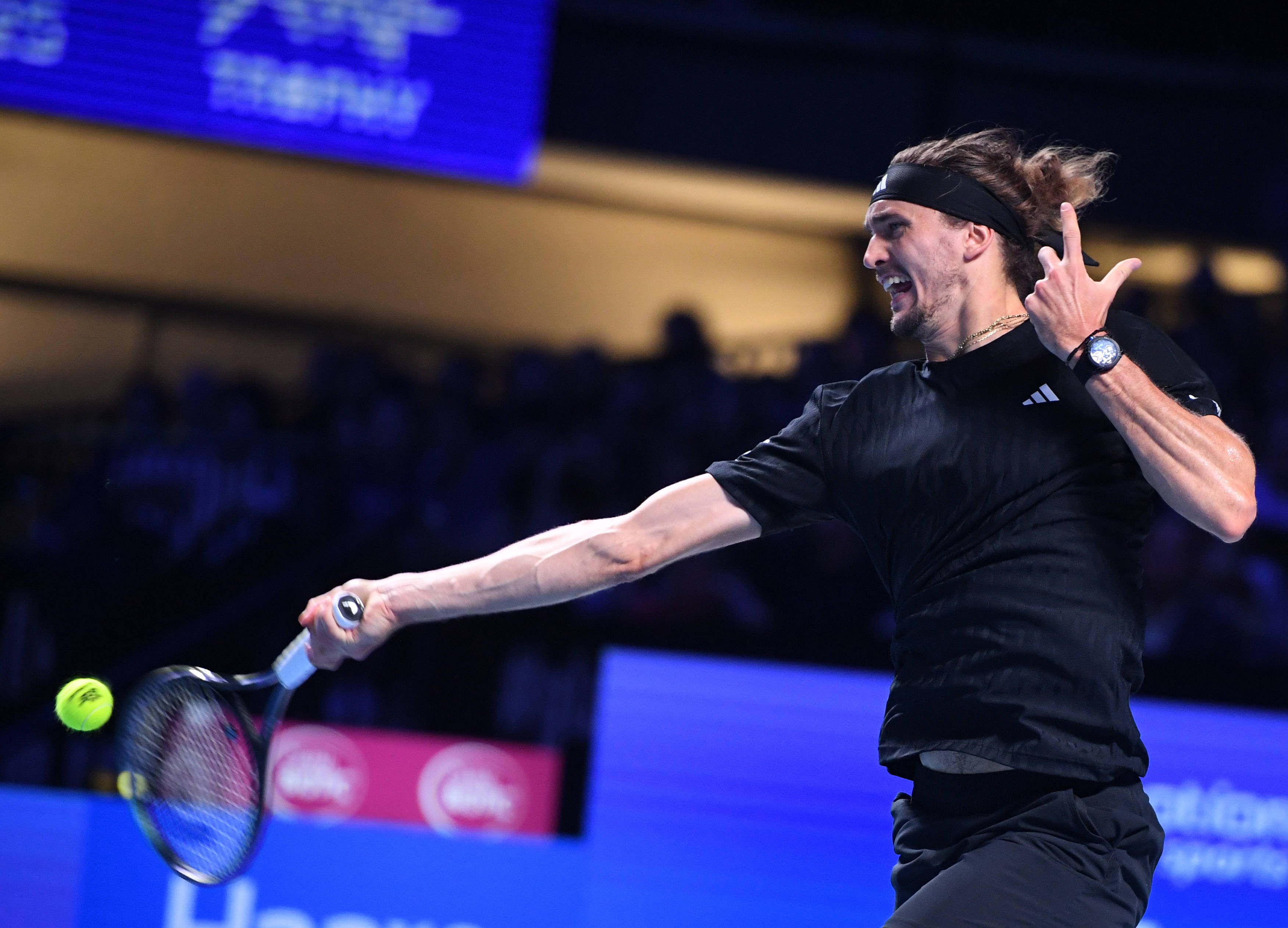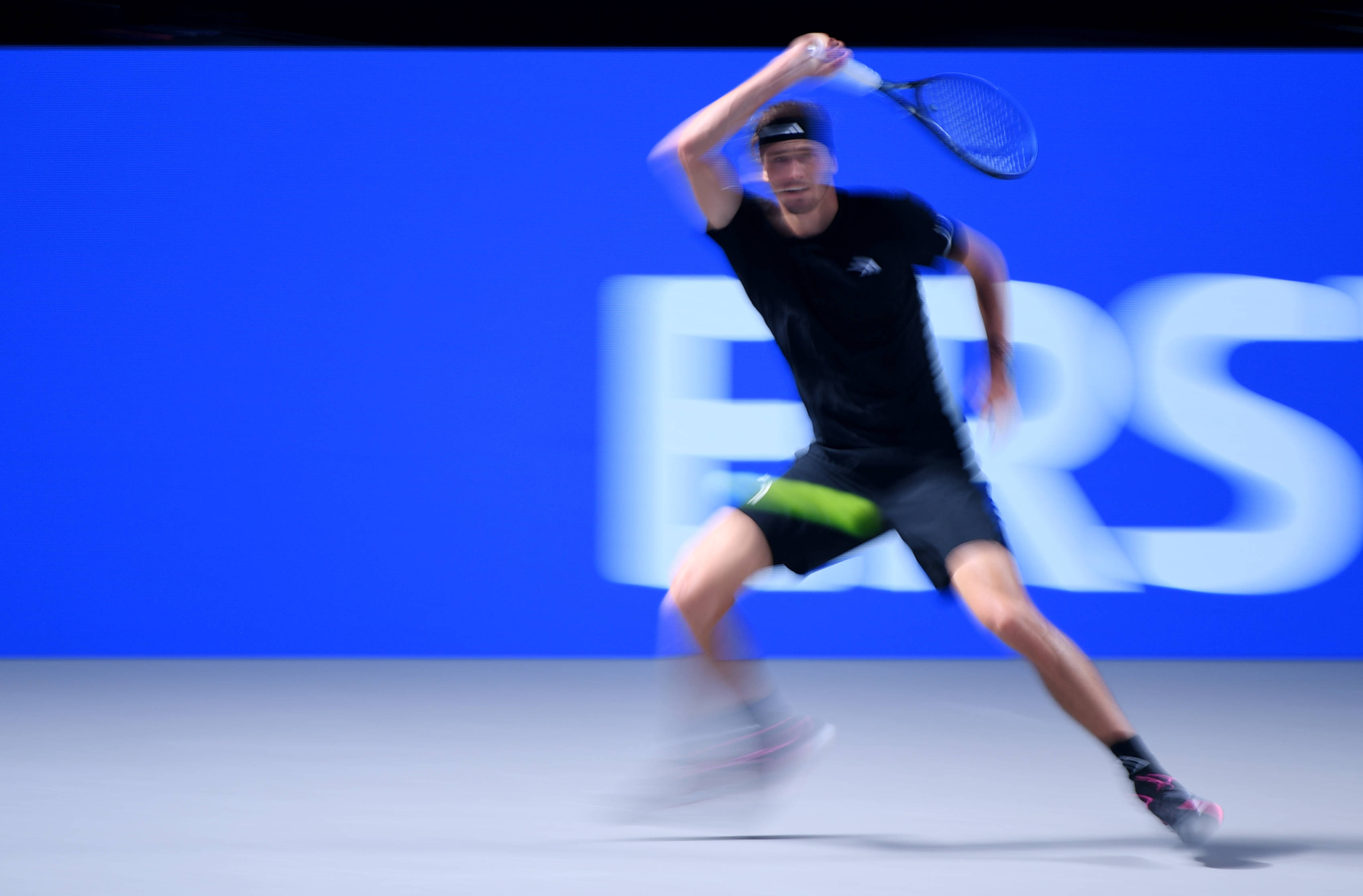 10月26日,德國(guó)選手茲韋列夫在比賽中回球。 新華社記者 賀燦鈴 攝