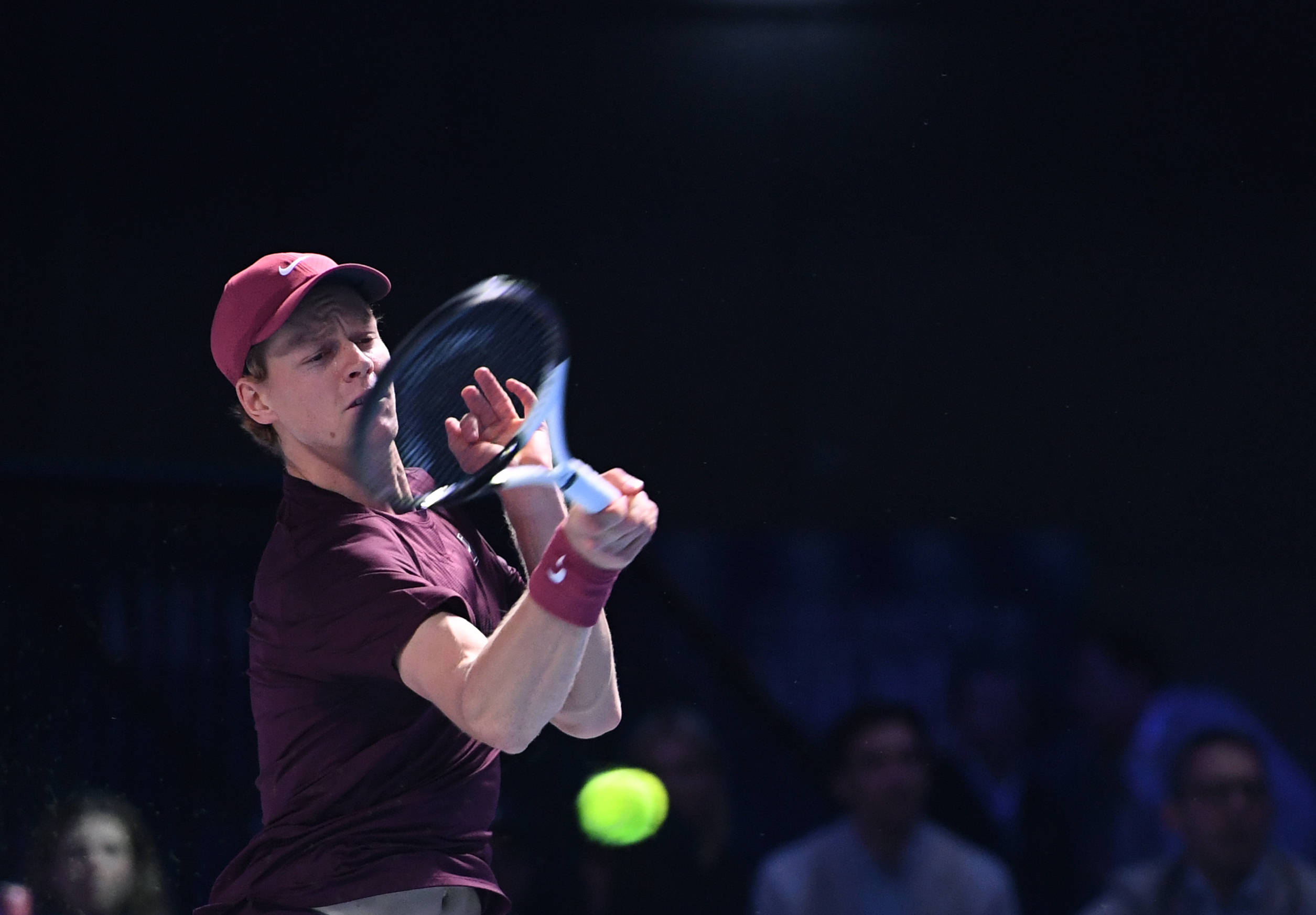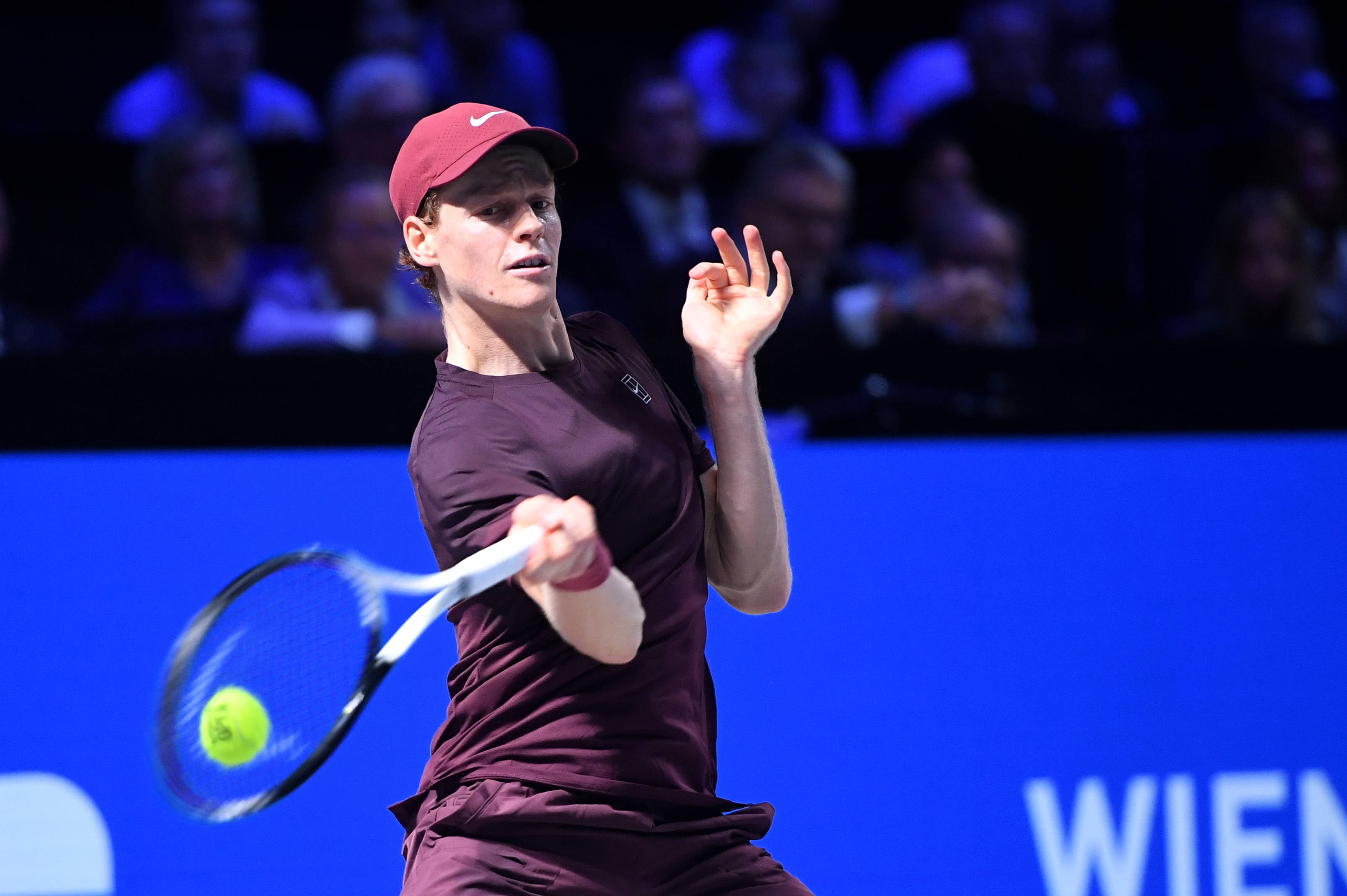 10月26日,意大利選手辛納在比賽中回球。 新華社記者 賀燦鈴 攝