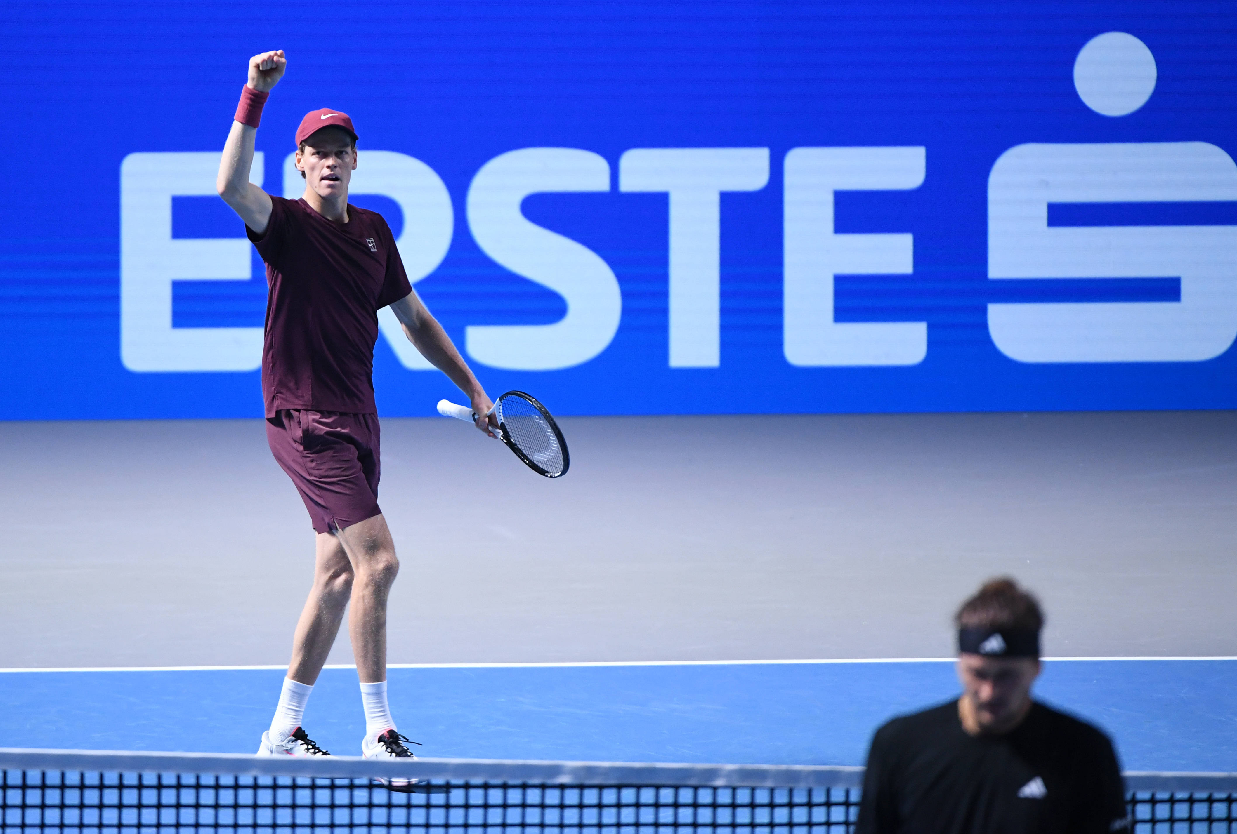 10月26日,意大利選手辛納在比賽后慶祝勝利。 新華社記者 賀燦鈴 攝