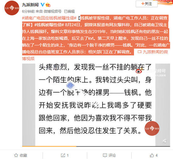 原標(biāo)題:錢楓被舉報(bào)性侵,湖南廣電工作人員:正在調(diào)查了解